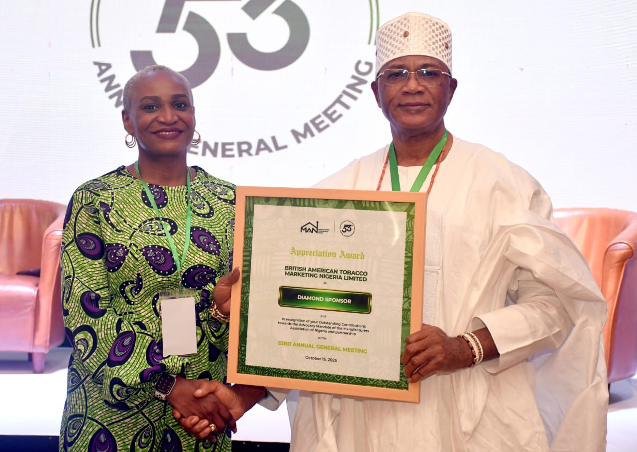British American Tobacco Nigeria has been commended for its contribution to Nigeria’s manufacturing sector, having generated more than $ 300 million in export sales between 2022 and 2024. The company announced the achievement at the 53rd Annual General Meeting of the Manufacturers Association of Nigeria, where it received the Diamond Sponsor Appreciation Award for its long-standing support of industrial growth and promotion of locally produced goods.