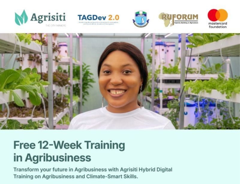 The Agrisiti Hybrid Digital Training in Agribusiness and Climate-Smart Skills is a unique opportunity for young Africans to gain modern agribusiness knowledge, practical climate-smart agriculture skills, and access to mentorship and funding pipelines. By participating in this 12-week free training, youth can secure long-term income opportunities, entrepreneurial growth, and relevance in Africa’s agribusiness sector.
