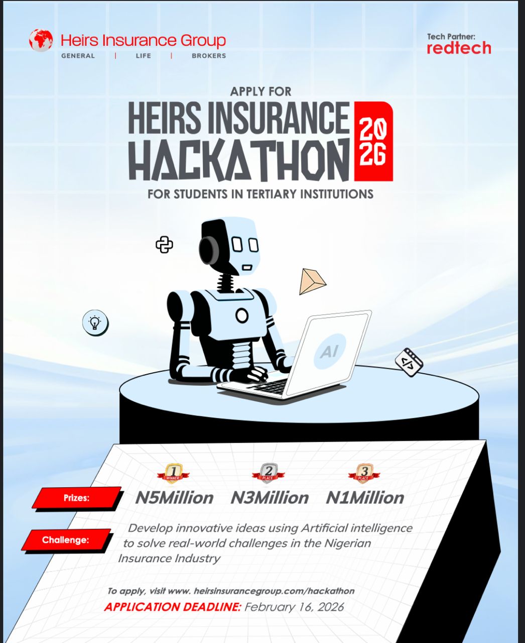 The Heirs Insurance Group has announced the Heirs Insurance Hackathon 2026, a national innovation challenge open to students in Nigerian tertiary institutions. The hackathon is designed to uncover bold, practical, and scalable ideas that apply Artificial Intelligence (AI) to solve real-world problems within Nigeria’s insurance industry.
