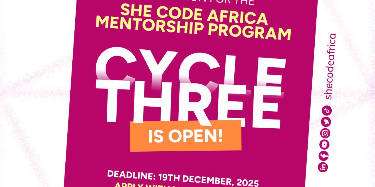 She Code Africa has opened applications for Cycle 3 of its highly impactful Mentorship Program — a structured three-week learning journey designed to support African women navigating the tech ecosystem. Whether you’re transitioning into tech or seeking guidance to grow in your current role, this program offers personalised mentorship, community support, and the clarity needed to advance your career with confidence.