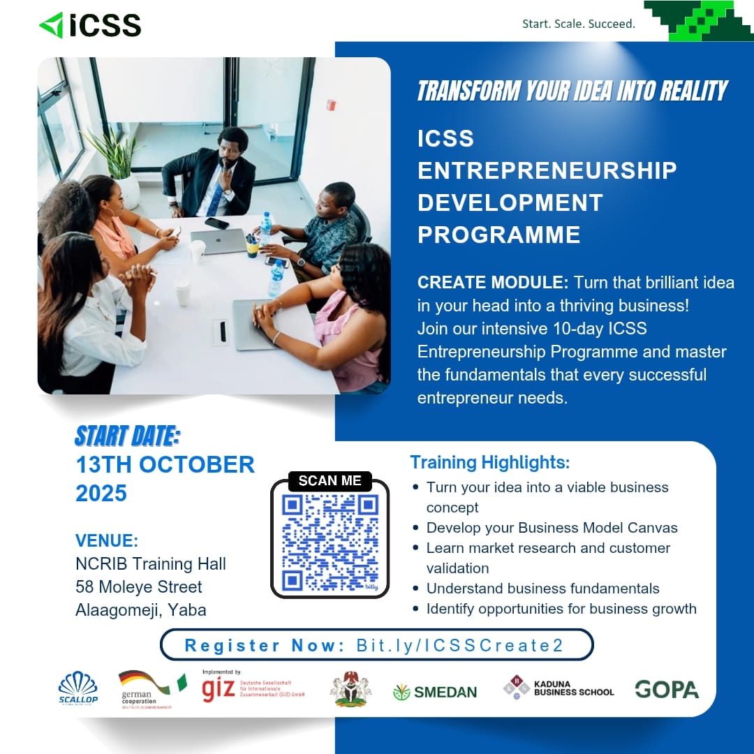 The ICSS Entrepreneurship Development Programme is a practical and immersive training initiative focused on helping young innovators transform ideas into viable, scalable businesses. Through the CREATE Module, participants will explore the essential building blocks of entrepreneurship from validating business ideas and developing business models to understanding customer needs and identifying growth opportunities.