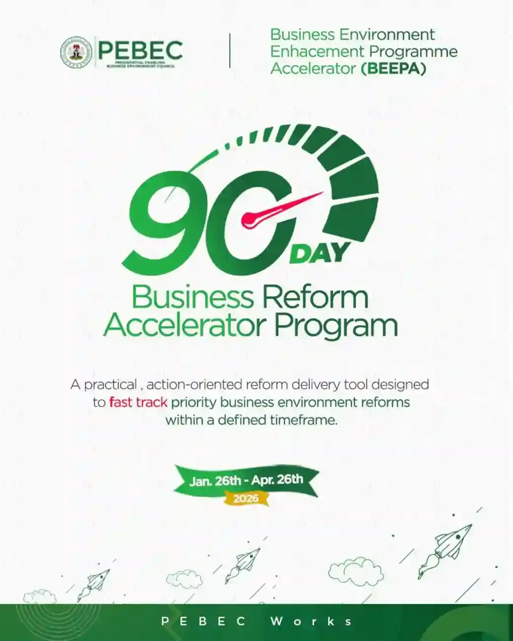 The Presidential Enabling Business Environment Council is set to roll out the 2026 Business Environment Enhancement Programme Accelerator, a 90-day reform initiative designed to convert long-standing policy commitments into concrete, measurable improvements for businesses operating in Nigeria.