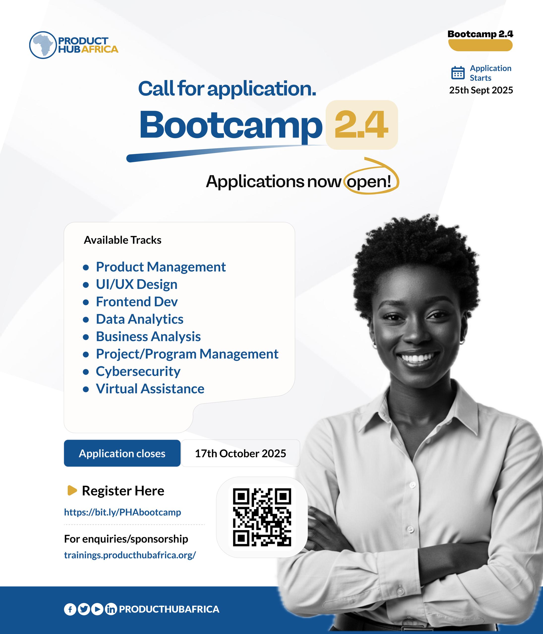 Product Hub Africa invites tech-inclined individuals from across the continent π to join its tuition-free online tech bootcamp.